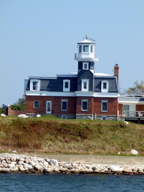 North Dumpling Island and its lighthouse were sold to a private owner in 1959. In the 1980s a subsequent owner remodeled and enlarged the lighthouse altering its appearance considerably. Today the island and lighthouse are owned by Dean Kamen who is famous for, among other things, inventing the Segway Human Transporter. But the beacon in the top of the tower still shines thanks to the care of the U.S. Coast Guard. ≡