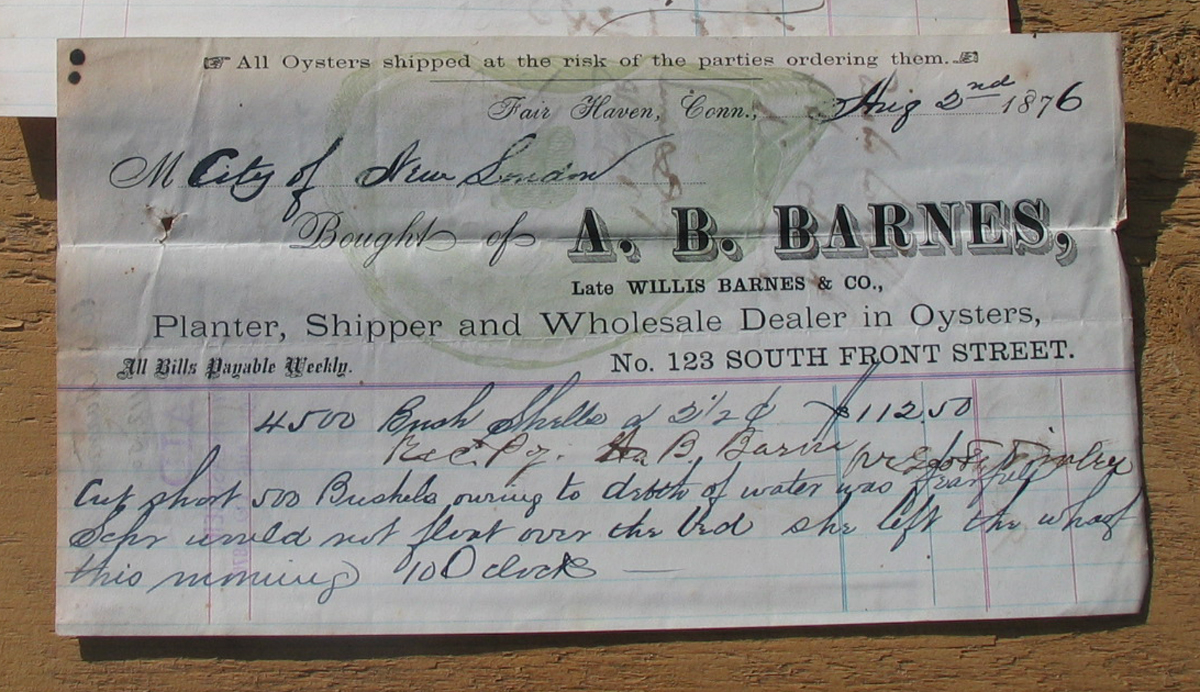 Clark's packet contained several wonderful city of NL documents, including the one, at left, showing an 1876 purchase of '4,500 bush(els?) of (oyster) shells'. It's now in the Oyster exhibition where it will be on view through Sunday!