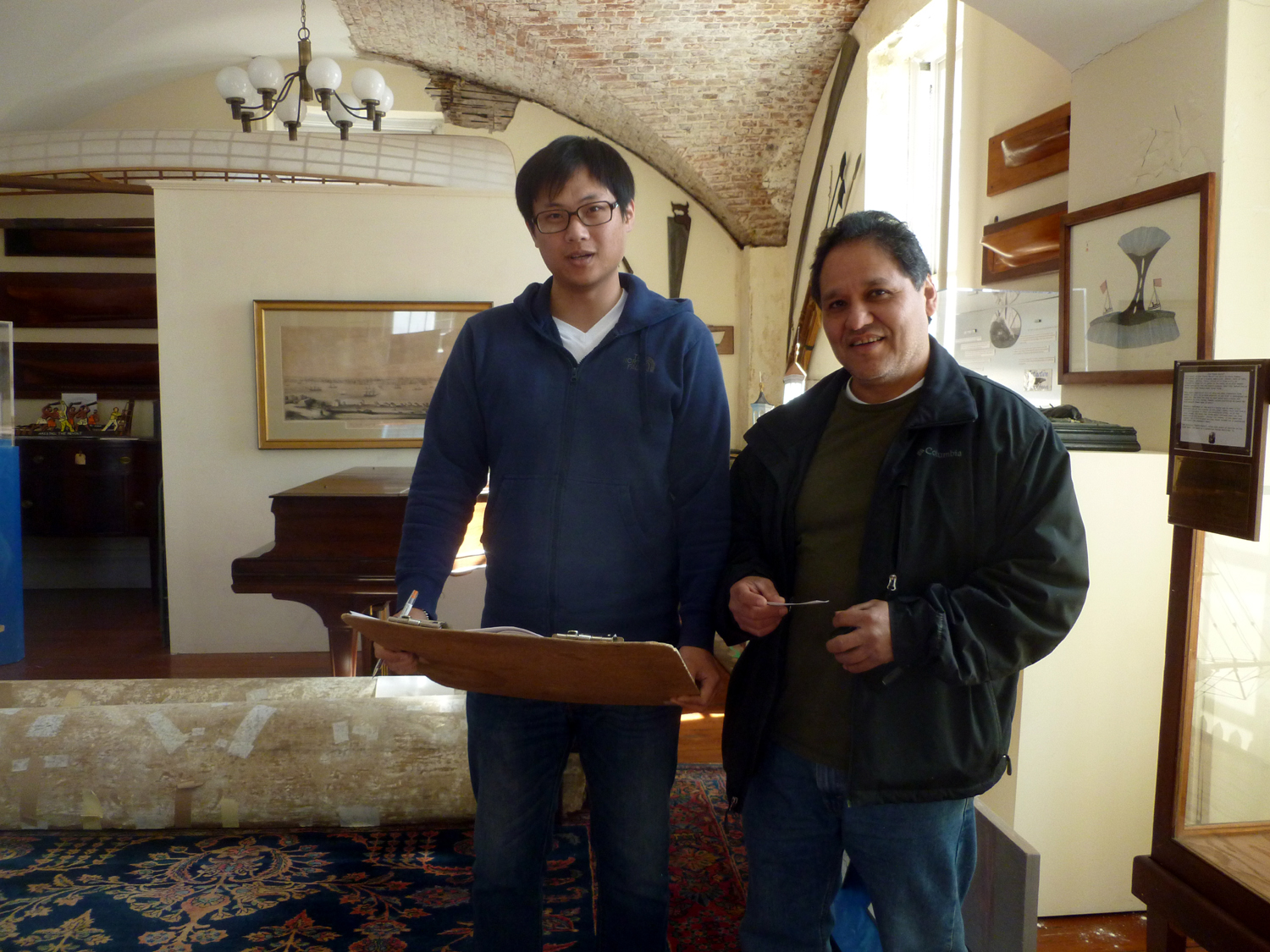3.13.12 Today architect Jose Guzman, left, came from Boston to begin examining the museum in terms of life-safety issues. His work was made possible because on Friday we were fortunate to recieve a Frank Lookins Palmer grant.