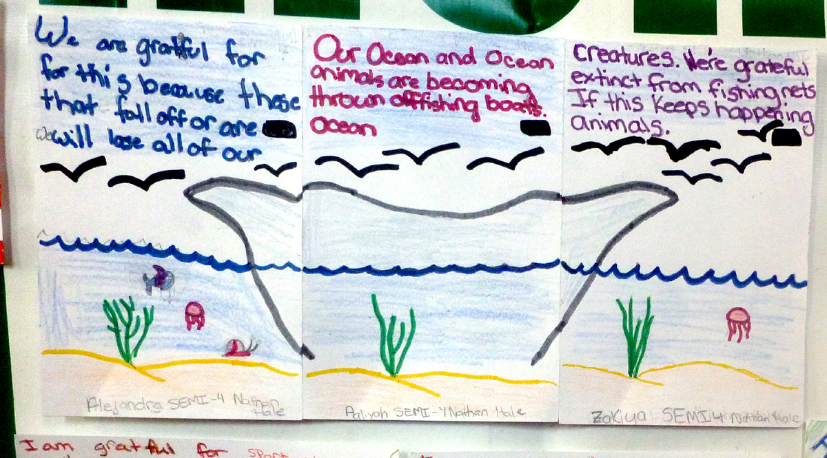 Part of the visit had to do with students making their own Gratitude postcards. Examples are at the left & above!