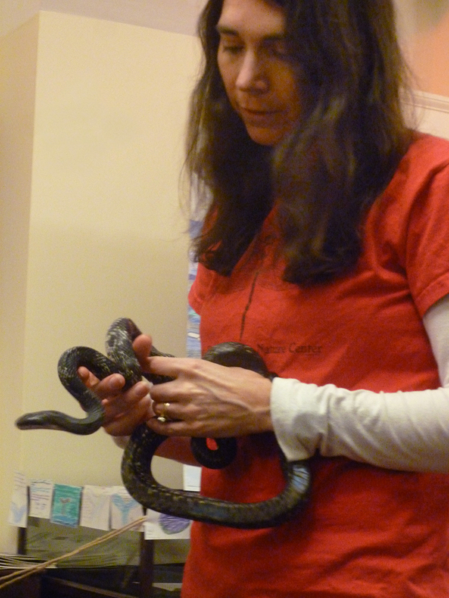3.8.12 Kim Hargrave, above, education director at Mystic's Denison Pequotsepos Nature Center, brought Otus (the Screech Owl otus asio) & friends for a program on how to