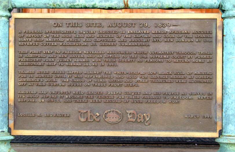 How fitting, then, that Gedney pulled La Amistad into New London, docking at Lawrence Wharf only feet from the U.S. Custom House. In 1839, the Custom House sat directly on the water. Maps from the period show a bit of water immediately adjacent to the building, where small boats could “park” at the Custom House and do business, declaring their imports and exports in this busy Connecticut port. These imports and exports, of course, were future properties—either goods or