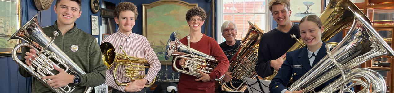 We thank Students from Connecticut College & the Coast Guard Academy: EUPHONIUMS - Cade Fogdall, David Ulmer, Quinn Yanaway, and TUBAS - Jesse Ellis, Ella Thompson & Gary Buttery, Director for a terrific Tuba-Euphonium Christmas!